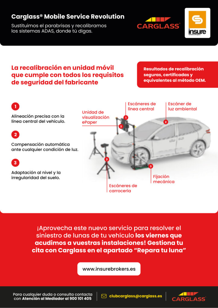 Dada la importancia de estos sistemas de seguridad, al sustituir el parabrisas, la cámara debe de volver a calibrarse según las indicaciones del fabricante del vehículo. Restablecer la función original y enviar la información correcta debe de hacerse en un proveedor especializado que disponga de las homologaciones otorgadas por el fabricante del vehículo como Carglass, que también tiene un sistema de calibración a domicilio, como nuevo servicio añadido, además de sustituir la luna «in situ», pueden calibrar el sistema ADAS.